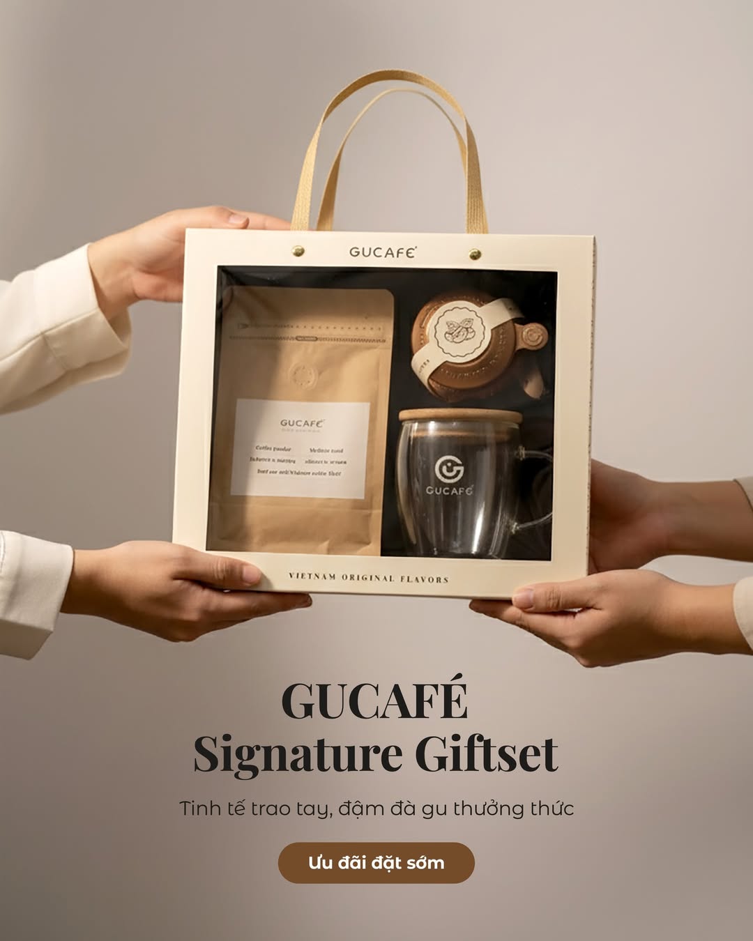 Nhắc đến cà phê quận 1, người ta không chỉ nhớ về những góc phố sầm uất mà còn là hương thơm đặc trưng lan tỏa từ những chiếc phin nhỏ giọt – biểu tượng của sự kiên nhẫn và phong cách thưởng thức an nhiên. GUCAFÉ đã khéo léo gói trọn hơi thở ấy vào trong bộ quà tặng Signature, biến mỗi tách cà phê tại gia trở thành một trải nghiệm nghệ thuật như đang ngồi giữa lòng Sài Gòn.