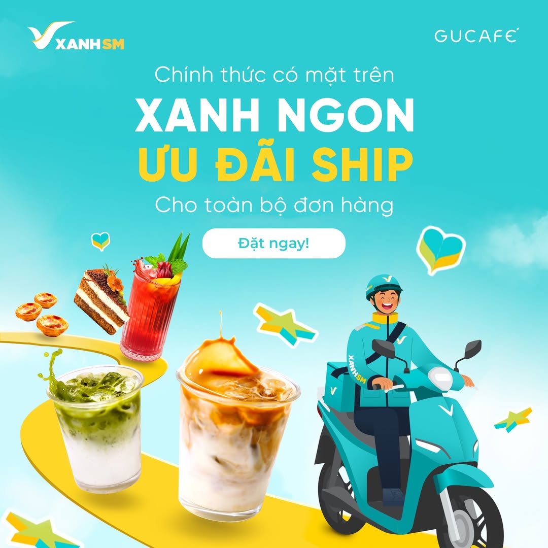Ưu đãi chào sân trên Xanh SM có số lượng giới hạn. Đừng bỏ lỡ cơ hội trải nghiệm GUCAFÉ theo cách tiện lợi và tiết kiệm nhất – mở app Xanh SM, tìm kiếm “GUCAFÉ” và đặt món ngay hôm nay để cảm nhận trọn vẹn tinh thần GU Feeling – GU Enjoy.
